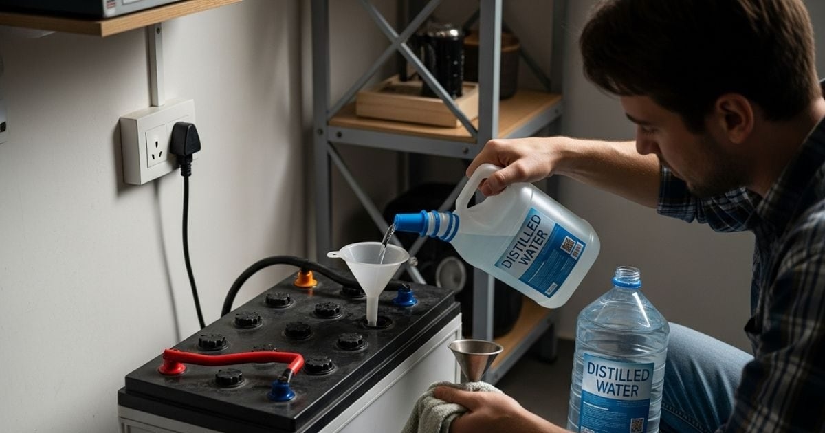 कब और कैसे डालें पानी? हर 2-3 महीने में चेक करो. बैटरी पर मिनिमम और मैक्सिमम लाइन होती है (या ग्रीन-रेड मार्क). अगर पानी लेवल मिनिमम से नीचे है तो पानी डालना चाहिए. इन्वर्टर बंद करो, प्लग निकालो, कैप खोलो (फनल यूज करो ताकि आसानी से डाले), धीरे-धीरे डिस्टिल्ड वाटर डालो, ग्रीन मार्क तक या मैक्सिमम से थोड़ा नीचे. ज्यादा मत डालना, वरना ओवरफ्लो हो सकता है. फिर कैप अच्छे से बंद कर दो.