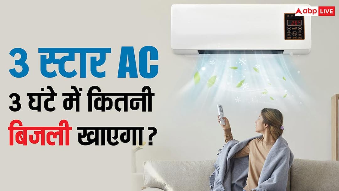 3 Star AC Power Consumption: एसी चलाते समय लोगों को सबसे ज्यादा टेंशन बिजली के बिल की रहती है. अगर एसी 5 स्टार एनर्जी रेटिंग वाला है तो यह सबसे कम बिजली की खपत करता है, जबकि एक स्टार रेटिंग वाला एसी ज्यादा बिजली कंज्यूम करता है. भारत में ज्यादातर लोग 3 स्टार रेटिंग वाला एसी खरीदते हैं. यह कीमत और परफॉर्मेंस के मामले में बैलेंस्ड है. यह 5 स्टार से ज्यादा, लेकिन 1-2 स्टार रेटिंग वाली एसी से कम बिजली लेता है. ऐसे में कई लोगों के मन में सवाल हो सकता है कि एक घंटे यूज करने पर 3 स्टार एसी कितनी बिजली पी जाता है. आज इस सवाल का जवाब जानते हैं.
