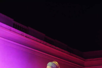 The projection of Johannes Vermeer’s Girl with a Pearl Earring on one…