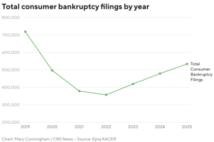 New data shows more Americans are filing for bankruptcy, the latest indication…