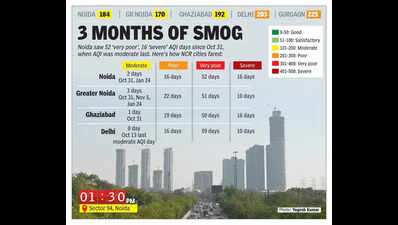 Noida: The city's air quality improved to ‘moderate' category on Saturday for…