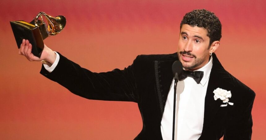 Bad Bunny took home the top prize at the Grammy Awards — Album of the Year — as Kendrick Lamar also won big with five awards. Meanwhile, many artists at the awards show wore “ICE out” pins and called for love and hope in their speeches.