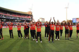 Alcaraz’s difficulties were initially not as dramatic, but he hit trouble in the ninth game of the third set having appeared to vomit into a towel a few minutes earlier, stretching and massaging his right thigh as he struggled to push off on the serve.