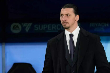 Former soccer star Zlatan Ibrahimovic stands before the Italian Super Cup semifinal…