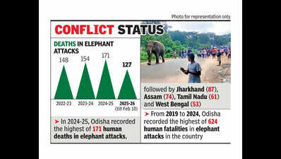 Bhubaneswar: Human fatalities in elephant attacks in Odisha are the highest in the country, with 17 people killed per 100 elephants, according to data compiled by Wildlife Society of Odisha, an NGO, from the census carried out by Wildlife Institute of India (WII) last year. The figure is substantially higher than other states like Karnataka and Kerala which have more elephants, and reported one human death per 100 elephants.The report, ‘Status of Elephants in India: DNA-based Synchronous All India Population Estimation of Elephants, 2025′, on the exercise carried out by WII put Karnataka and Kerala elephant numbers at 6,013 and 2,785, respectively, compared to Odisha’s 912.Biswajit Mohanty, a wildlife conservationist, said, “Assuming the WII DNA-based figure is accurate, Odisha reports a very high rate of human deaths compared with its elephant population, as the WII study is for all states and not for Odisha only. Second, many believe that the WII study invariably shows a lower population trend. But in that case also, Kerala’s 6,000-plus population and human deaths give a marginal casualty ratio and not alarming as Odisha.Mohanty said that even if Odisha’s own elephant census figure (2,103) is taken as accurate, human deaths per 100 elephants comes to 7, which is still high compared to other states.Conservationists claimed the forest department usually blames early morning open defecation by villagers as the major reason for rising elephant attacks, with families losing their earning members, farmers, firewood collectors or food gatherers.Sources said that though the state govt paid Rs 3.67 crore to a private consultant in 2016 for a wildlife conflict mitigation plan, nothing has materialised yet. Since 2019-20, human fatalities have risen sharply, crossing 115, and in 2024-25, touching 171.“Elephant movement in corridors is severely affected as they have been degraded by quarrying and development work. The forest department didn’t notify 14 identified corridors, though a govt decision was taken in 2012,” Mohanty said.PCCF (wildlife) Prem Kumar Jha said awareness and sensitisation are two important components in tackling human-elephant conflict. “Even in elephant zones, people are coming in the way of the animals despite knowing past incidents. Early morning firewood collection and answering to nature’s call are known factors in the conflict. We are trying to sensitise people to remain alert,” he told TOI.