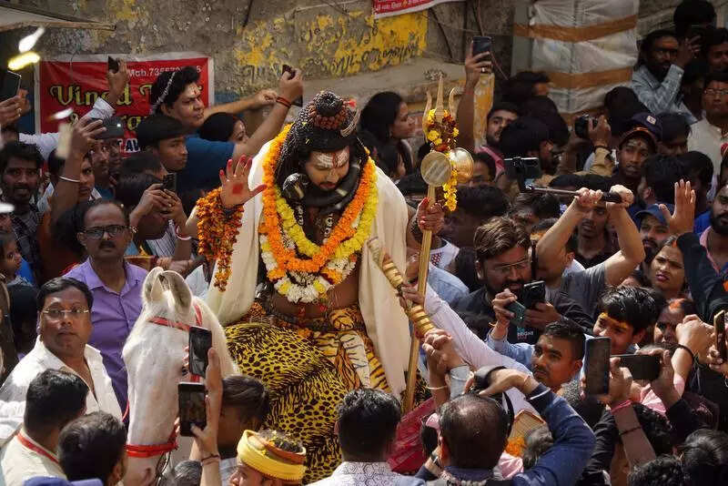 Varanasi: Kashi came alive on Mahashivratri, with devotees thronging Shiv temples across the city. The Kashi Vishwanath Temple saw 5.46 lakh t devotees offering prayers till 7pm, while the Panchkroshi Parikrama route was packed with pilgrims completing the sacred ritual. The evening festivities got a boost from the vibrant ‘Shiv baraat’.The festivities for Lord Vishwanath’s marriage day kicked off on Saturday evening, with devotees, especially youngsters, flocking to Manikarnika Ghat to start the Panchkroshi Yatra. Thousands lined up outside the Kashi Vishwanath Dham, filling the barricaded areas. The shrine area was transformed with stunning floral decor and vibrant lighting, making it a sight to behold.As soon as the sanctum sanctorum doors opened, the ‘mangla aarti’ was followed by ‘jharokha darshan’, allowing devotees to catch a glimpse of the deity from outside. The darshan continued non-stop.The temple’s CEO, Vishwa Bhushan Mishra, said that even during ‘char prahar ki aarti’ and Monday’s ‘bhog aarti’, the darshan will continue. The temple kept all its services, including medical camps, a counter to trace missing persons, drinking water, and food items, including for fasting people. Commissioner of Police Mohit Agrawal and senior officials kept a close eye on traffic, crowd control, and security measures at the KV Temple and Ganga ghats, monitoring via CCTV and drone cameras.Devotees thronged not just the Kashi Vishwanath Temple, but also other Shiv temples across the city, including Markandeya Mahadeo Temple at the Ganga-Gomati confluence, Kedareshwar, Onkaleshwars, and the Vishwanath Temple at BHU campus. The city’s Shiv temples were decked up and echoed with devotional chants, but the real show began in the afternoon. ‘Shiv baraats’ from across the city converged into the main procession, which started from Daranagar in the evening. The Barat, led by top-notch band parties, Shehnai and Nagada players, and tableau artistes dressed as deities and mythological characters, waded through Maidagin, Chowk, and Godowlia, culminating at Dashaswamedh.Preparations for the traditional bhang-infused thandai were underway, drawing crowds to popular spots, and thandai shops did roaring business.