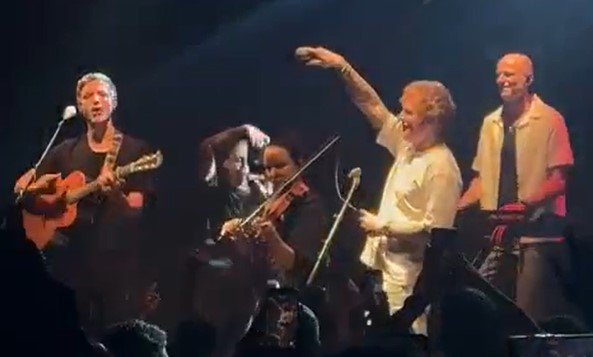 Midway through the Irish folk-fusion band’s set, Sheeran emerged guitar in hand to roaring applause.