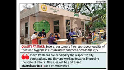 Bengaluru: Hailed once as a lifeline for the urban poor, Indira Canteens of Bengaluru are now battling complaints of poor food quality, staff shortages and crumbling infrastructure.A visit to several Indira Canteens across the city revealed a worrying picture — watery sambar, undersized portions, locked toilets and erratic water supply were commonplace.Launched in 2017 to provide affordable meals – Rs 5 for breakfast and Rs 10 for lunch and dinner – the canteens cater to thousands of customers daily. As per guidelines, a breakfast should weigh 225 grams and meals 300 grams. However, customers allege these standards are rarely met.Bengaluru has 198 Indira Canteens out of which 169 are operational and 29 suspended.At the Rajajinagar canteen, regular customer and daily wage worker Manjunath Gowda said, “We come here even now only because it is affordable. But idlis are often hard, and sambar is watery. For Rs 10, we don’t expect luxury, but at least basic quality should be maintained.”Rajanna Byali, a sanitation worker and another regular customer at KR Market canteen, echoed similar concerns. Hailing from Bidar, Rajanna came in search of work in Bengaluru and worked with BBMP (now GBA) for over two years. “Sometimes the rice is undercooked, and the vegetables are very few. Still, we eat because we cannot afford hotels,” he said.“We have a canteen inside the GBA building, but the challenge is that we are not always around the GBA head office. When I head out, I search for the nearest canteen, but find that most of them are poorly maintained and their food quality is poor. It is a challenge for us to cook three meals a day at home because of time and cost factors. But swallowing the morsel that is served here is painful.”The cooking staff say they are stretched thin. Shobha Murthy, who has been working at the Chalavadi Palya canteen for six years, said, “We cook and serve hundreds every day with very limited staff. If one person is absent, the whole system struggles. We try our best, but resources are not enough.”She added, “Some days, our provisions also get exhausted, and then we are forced to collect money amongst ourselves, get provisions and cook food because we do not want to send people away without food. Unfortunately, the corporation does not release our salaries on time.”Water supply is another major challenge at most canteens TOI visited. At Chalavadi Palya, Cauvery water is unavailable and tankers supply water intermittently. “The motor pump does not work properly. We draw water manually from the sump using buckets. How long can this continue?” wondered Ramesh GK, a kitchen helper.At the Dharmarayaswamy temple ward canteen, staff admitted to hygiene issues as a foul smell from a nearby garbage dumping ground is overwhelming throughout the day.“People do not want to come here because of the foul smell. To top it up, there is a lack of proper handwashing facilities because there is no water supply, and water often trickles out of the taps, irking the customers,” said a helper, requesting anonymity.Adding to the inconvenience, none of the canteens visited had digital payment facilities. “Even roadside vendors accept UPI. Why can’t Indira Canteen?” said Arif Khan, an auto driver who eats at the Indira Canteen in Banashankari.GBA chief commissioner Maheshwar Rao said, “The Indira Canteens are handled by the respective city corporations, and they are working towards improving the state of affairs. However, all issues will be addressed.”