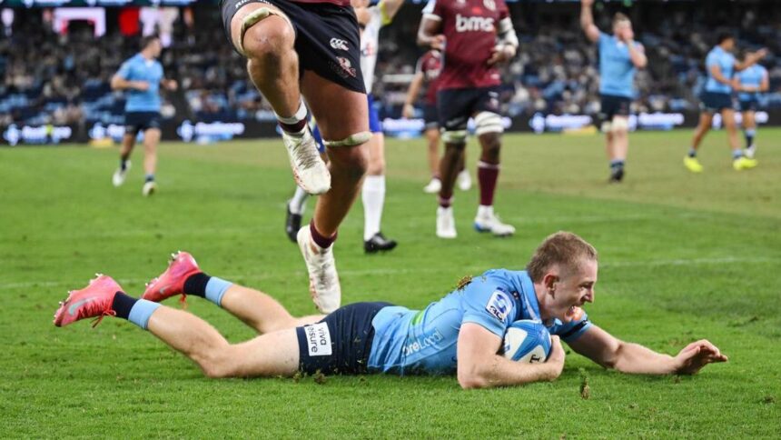 After spurning multiple opportunities at penalty goals, the Waratahs’ confidence paid off when powerhouse flanker Clem Halaholo bulldozed over on debut for the opening try of the night in the seventh minute.