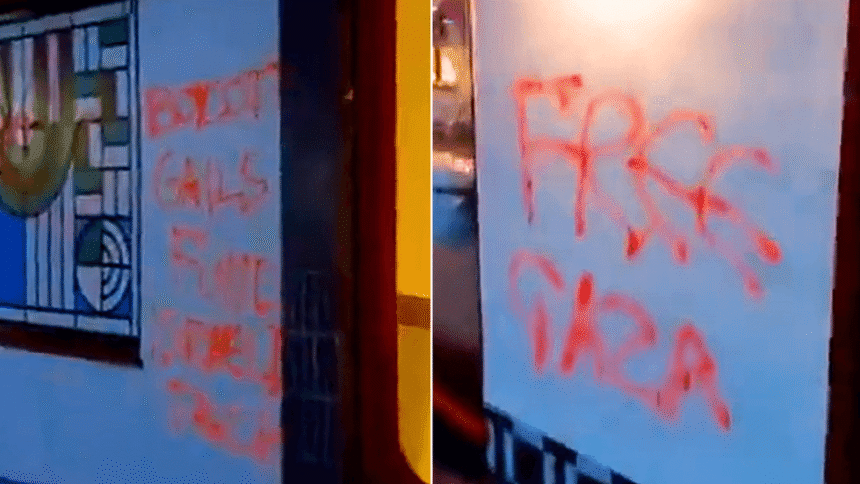 A Gail’s bakery has been vandalished with pro-Gaza messages in what has been described as an “intimidation” campaign.