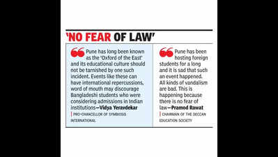 Senior inspector Sandeep Deshmane of the Kothrud police told TOI, “The MIT-WPU officials on Wednesday evening informed us through a letter that some youngsters from an organisation damaged the Bangladeshi food stall after the event concluded. No one was injured. We are awaiting a detailed statement from the college authorities, after which a FIR can be registered.”MIT-WPU registrar Ganesh B Pokale said, “We gave a complaint (application) to the Kothrud police on Wednesday. There is no refusal from our side to lodge a complaint. We are extending all support to the police to proceed further.”Deputy commissioner of police (Zone-III) Sambhaji Kadam dismissed suggestions that the police were under any pressure. “We just got a letter stating such an incident happened on the campus. Thereafter, nobody came to file a complaint from MIT’s side. Can they give it in writing that we refused? We are more than ready to file an FIR. Our police station staff even called MIT officials asking them to give a detailed statement, but nobody came,” Kadam said.Pokale, however, insisted that the police asked them for nothing after receiving the letter. “The letter was intended for registration of an FIR. The police have not called us. Along with our letter, we also gave them details of the incident, and a pen drive with CCTV footage and pictures we could gather of the incident.”The attack has drawn condemnation from private universities, which host a large number of foreign students. They said the act could damage Pune’s reputation as an education hub, particularly among foreign students, who choose Pune for its perceived safety, climate and culture. “Pune has been hosting foreign students for a long and it is sad that such an event happened. All kinds of vandalism are bad. This is happening because there is no fear of law,” Pramod Rawat, chairman of the Deccan Education Society, said.“Pune has long been known as the ‘Oxford of the East’ and its educational culture should not be tarnished by one such incident. Events like these can have international repercussions, word of mouth may discourage Bangladeshi students who were considering admissions in Indian institutions. We must be mindful of how we treat international students,” Vidya Yeravdekar, pro-chancellor of Symbiosis International, said.