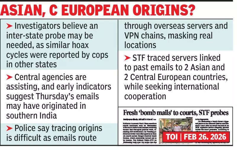 Kolkata: An interstate probe might be the way ahead for both Kolkata Police STF and the Bengal Police as they grapple with the 3rd successive day of fake bomb scares. The pattern is there for all to see — each day a different set of institutions is targeted, and the threats are a mix of veiled warnings as well as setting a specific time by which these institutions are to be “vacated” for anti-sabotage checks.Sources in KP STF claim multiple other state sources saw this cycle of hoax calls. They were not always successful in detecting the perpetrators, whether it was Delhi or Punjab in the north or Tamil Nadu in the south. “We are taking help of central agencies, too. However, we are looking at some quick help from the tech giants,” said an officer, even as early indications suggest that Thursday’s emails might have originated down south.The city cyber and STF police teams probing the 6-odd hoax bomb threats in the city last year at educational institutes and museums said they got a major breakthrough, as a tech giant team promised to update its privacy statement and service agreement, enabling the firm to share crucial information to support the probe. Police sources said when they attempt to fix the origin of a threat, they are not led to a desktop in Delhi, but to a server in a jurisdiction like Panama or the Seychelles, or in central Europe. Using VPN chains — routing a connection through multiple encrypted tunnels — the perpetrator ensures that the IP address visible to Kolkata Police is a dummy. After the KP STF took over the probe, investigators traced the servers used in several of these emails to 2 Asian and 2 Central European nations, though even these can be masked. A senior officer added that the KP unit, in association with state police, is working with central agencies and seeking international cooperation to identify the perpetrators.