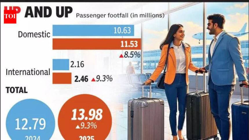 Ahmedabad: Sardar Vallabhbhai Patel International Airport in the city recorded a strong rise in passenger traffic in 2025, with total footfall of 13.9 million. This included both domestic and international passengers. According to data from the Airports Authority of India (AAI), total passenger traffic rose to 13.98 million in 2025, up from 12.79 million in 2024. In absolute terms, the airport handled nearly 1.2 million additional passengers over the previous calendar year. Airport officials and travel industry players, attributed the rise to steady economic activity, rising business and leisure travel, and major concerts and sporting events held in the city.“Capacity enhancement and network expansion over the past year played a key role in the rise in passenger footfall at the city airport. Air India Express began its operations from Ahmedabad during the year. Most airlines added frequencies as well as new sectors, while other domestic and international carriers too increased their presence. This improved seat availability and connectivity, particularly to key metros and regional destinations, and drove footfall,” an airport source said.“Improved surface connectivity played a role too, with the Gujarat State Road Transport Corporation (GSRTC) operating direct bus services from cities such as Rajkot and Vadodara to the airport, making access easier for passengers from across central and Saurashtra Gujarat,” the source further added. Domestic travel continued to account for the bulk of passenger movement, while international traffic emerged as the faster-growing segment with passenger numbers in the latter rising by 13.5% year on year, outpacing overall growth.Virendra Shah, who runs a travel company in Ahmedabad, said, “We witnessed a strong tourism-led rebound. Leisure travel grew, and so did NRI arrivals during the year.”
