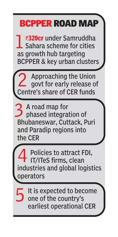 Bhubaneswar: Pushing ahead with urban-led economic growth, chief minister Mohan Charan Majhi on Friday said the state will use the proposed Bhubaneswar-Cuttack-Puri-Paradip Economic Region (BCPPER) as a template to build three additional industrial corridors. The Centre has already committed Rs 5,000 crore for the BCPPER under the new City Economic Regions (CER) framework. The state will activate three new agglomerations — Bargarh-Jharsuguda-Sambalpur (BJS), Berhampur-Chhatrapur-Gopalpur (BCG) and Jeypore-Koraput-Sunabeda (JKS) — to develop them as economic clusters. “The rollout will be done in a phased manner,” Majhi said. Under the Samruddha Sahara scheme, the CM allocated Rs 320 crore, focusing on comprehensive town planning and new city development in BCPPER and major clusters such as Sambalpur and Berhampur. The funds will support area surveys, road networks, sewerage, electrification and other key urban utilities. “The budget will outline the initial financial commitment for the BCPPER. The idea is to demonstrate readiness so that central funds are allocated immediately,” a senior official said. Preliminary assessments suggest the region could account for nearly one-third of Odisha’s economic output once operational, given it already hosts major IT parks, ports, industrial corridors, logistics hubs, tourism centres and the administrative capital. Urban policy expert Manas Rout said the BCPPER could help Odisha attract significantly higher foreign direct investment. “FDI prefers dense, well-connected urban clusters. Odisha has industrial strength, but its cities have never been packaged as integrated investment destinations,” he said. Economist Biswas Ranjan added that a unified economic zone anchored in urban infrastructure would diversify investment beyond mining and mineral-based industries. The govt had earlier allocated Rs 1,342 crore for the Bhubaneswar New City across Gothapatna, Daspur and Malipada for land acquisition and core infrastructure. Urban planners said the ‘New City’ aligns well with the larger BCPPER vision. “BCPPER will work best if new townships, transit corridors and industrial nodes are developed simultaneously,” said researcher Piyush Ranjan Rout.