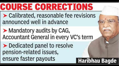 Jaipur: Rajasthan governor Haribhau Bagde flagged serious concerns over the deteriorating financial and academic health of state-funded universities, calling for fee revisions, relief on high-interest loans, pension reforms and stricter financial oversight to ensure their long-term sustainability.During a meeting with vice-chancellors of state-funded universities on Jan 21, the governor noted that tuition fees in these institutions had not been revised for nearly 10 to 12 years, severely weakening their financial position. According to the minutes of the meeting released on Jan 28, Bagde observed that prolonged stagnation in fees had affected the ability of these universities to meet rising operational costs.“When fees are not revised for a decade or more, it naturally weakens the financial position of universities and hampers their sustainability,” the minutes quoted the governor as saying. He recommended a calibrated and reasonable fee revision, stressing that any increase should be planned and announced well in advance and not implemented last-minute during the admission process.The minutes recorded the governor cautioning against abrupt fee hikes, noting that any sudden increases could trigger dissatisfaction and protests. Fee revision remains a sensitive issue in Rajasthan, with universities in the past having to shelve proposed hikes following resistance from student organisations.Bagde also drew attention to what he called a financial inconsistency in state policy. He pointed out that the state govt provides loans to state-funded universities at 10% to 12% interest, while nationalised banks generally extend loans at 8% to 10%. “Charging higher interest to a govt-funded institution appears inappropriate,” the governor remarked, urging the state govt to review its lending terms.In view of recent corruption cases against vice-chancellors that resulted in suspensions, the governor said every vice-chancellor must ensure a mandatory audit by the Comptroller and Auditor General (CAG) during the third year of his or her tenure. Bagde added that an Accountant General audit should be compulsory in every VC’s term to strengthen transparency and financial accountability in universities.Touching upon staffing issues, the governor said universities that do not receive state funding for salaries should not face hurdles in obtaining approval for recruitment against vacant posts. “Approvals should be granted without delay to address the acute shortage of teachers,” he said, warning that prolonged vacancies were harming academic quality.Bagde also advocated greater inclusion of ancient Indian knowledge systems in higher education. He specifically suggested introducing texts authored by the Vedic saint Rishi Parashar and Bhakti movement leader Vallabhacharya into university curricula.According to the minutes, the governor had separately discussed the issue of pension payments in state-financed universities with Chief Minister Bhajan Lal Sharma, apprising him of overall pension expenditures. He also proposed the formation of a dedicated committee to resolve pension-related issues and ensure timely payments to retired employees.The minutes, however, recorded that no progress on this matter had yet been communicated by the state govt. “I will raise the issue again,” the governor said, underlining the urgency of implementing structural reforms in the state’s higher education system.