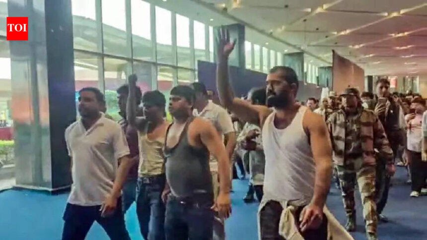 New Delhi/Shimla: Delhi Police has apprehended three more people, including one of the alleged key conspirators, from Himachal Pradesh in connection with the shirtless protest by Indian Youth Congress members during the recent AI summit at Bharat Mandapam.Sources said Saurabh had allegedly created a WhatsApp group and was among those who negotiated the procurement of shirts bearing objectionable slogans, with an upfront payment of around Rs 1 lakh. The arrests were marked by high drama as associates of the accused made PCR calls claiming that they were kidnapped by men posing as police. Himachal Pradesh Police registered an FIR against around 20 Delhi cops for allegedly abducting the trio from Rohru in Shimla without informing local police. ACP Rahul Vikram and inspector Satish Rana were among the Delhi cops detained till late Wednesday. Shimla Police said it was informed that 15-20 unidentified people, dressed in plainclothes, arrived in vehicles and forcibly took away three persons staying at a resort in Mandli, Chirgaon. The group also seized a Thar vehicle belonging to the guests. The DVR of the CCTV cameras installed at the complainant’s Chanshal Resort was allegedly taken without any seizure memo or receipt. HP Police set up a checkpoint at Dharampur in Solan district and detained the Delhi Police team, along with the three men. Delhi Police officers maintained they lawfully detained Arbaz, Saurabh and Siddharth, and had proper arrest memos and the required documentation to produce them before a Delhi court. The group was escorted to Shimla district court, where Delhi Police presented documents related to the Delhi FIR. The court permitted Delhi Police to take the trio to Delhi.However, as the team proceeded towards Delhi, Shimla Police stopped them again near Shoghi, informing them that an FIR had been filed and directing them to join the probe. Himachal CM Sukhvinder Singh Sukhu said Delhi Police should have at least informed Himachal govt officials.
