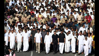 Chennai: Chief minister M K Stalin said the DMK panel to hold seat sharing talks with alliance partners would be formed soon.“It will be constituted soon,” Stalin told reporters on Tuesday at Kolathur. Stalin visited Kolathur, his assembly constituency, to inaugurate various projects including a park and ration shops. When asked about his opinion on DMK’s `new enemies,’ an apparent reference to TVK, Stalin said he does not look at anyone as an enemy. “I see everyone as a friend. I respect everyone,” he said. He said the recent Union Budget was a disappointment for TN. “People of the state will teach them (BJP) a lesson in the upcoming election for neglecting TN in the budget,” he said. Stalin said on X that TN will always say, “Get out for BJP,” who are imposing language and culture, apart from financial pressure. Earlier in the day,Stalin, along with senior party functionaries, ministers, MPs, and MLAs, marched towards late chief minister C N Annadurai’s memorial and paid tributes to mark his 57th death anniversary. The march started from the Anna statue on Anna Salai and proceeded along Walajah Road.AIADMK general secretary Edappadi K Palaniswami, and politicians from various parties too paid respect to Annadurai. Clad in black, EPS along with his party MLAs, and former ministers, paid respect to Annadurai at his memorial. “It is now the historic duty of our party, which proudly bears Anna’s name, to liberate Tamil Nadu from the clutches of evil forces,” Palaniswami said in an X post.VCK President Thol Thirumavalavan and VCK MP D Ravikumar paid respect to Annadurai in Delhi.Former CM O Panneerselvam and AMMK general secretary T T V Dhinkaran also paid respect at the Anna memorial.
