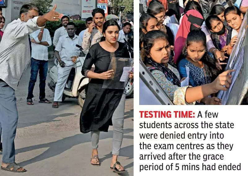 Hyderabad: About 97% of 5.14 lakh students appeared for the Intermediate public examinations on Wednesday.The first day of the exams was conducted without any untoward incidents. Like last year, a grace time of five minutes was extended to students this year as well to accommodate latecomers.“No malpractice cases were booked on Wednesday,” a release from the board read. It added that observers were sent to examination centres in Medchal, Hyderabad, Ranga Reddy, Jangaon, Suryapet, Nalgonda, Nizamabad, Siricilla, Bhupalpally, Warangal, Karimnagar, Asifabad, Adilabad, Mulugu, Medak, Khammam and Yadadri by the board, and the examination was conducted peacefully.As per the details released by the board, a total of 498,695 candidates appeared for their second language exam and 15,903 remained absent.Stray incidents of students missing exams as they turned up late, even after completion of the grace time, were reported from across the state.In a few cases, police turned good Samaritans as they helped students reach the exam centres on time. In one such case, a constable helped a candidate, who reached the wrong exam centre in Jeedimetla in the city, go to the right exam centre by dropping her on his two-wheeler.