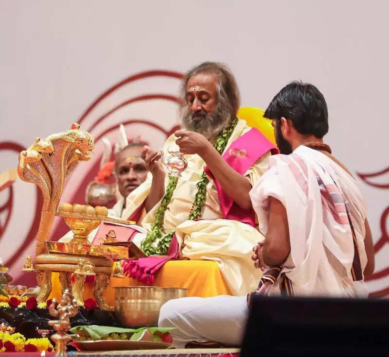 Bengaluru: Thousands of devotees gathered on Maha Shivaratri for a night of meditation, music, and rituals, led by spiritual leader Sri Sri Ravi Shankar at the Art of Living International Centre on Kanakapura Road, Sunday evening.The celebrations featured guided meditations, bhajans, and Vedic ceremonies, with the highlight being the Rudra Puja dedicated to Lord Shiva. Similar pujas were organised at around 150 locations in India and abroad.