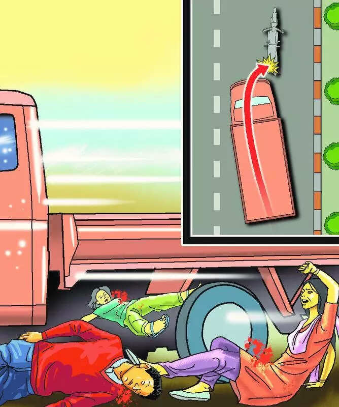 Kota: Three siblings were killed and their father injured after a speeding trailer rammed their motorcycle from behind on National Highway-27 under Dabi police station limits in Bundi district late Wednesday night. The accident triggered protests by villagers, who blocked traffic on the highway for over an hour.Police said Madan Banjara was riding to his village, Prarana, with his three children when a fast-moving trailer struck the motorcycle from behind. The impact was severe, dragging all four along the road. Three children died on the spot, while Madan sustained serious injuries and was rushed to a hospital in Kota for treatment. The deceased were identified as Ankit Banjara (8), Karan Banjara (12) and Suman (6).