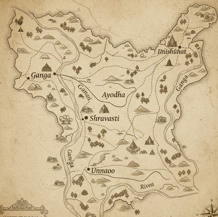 Long before it was a district, Unnao was geography. The land between the Ganga and Sai rivers placed it firmly within the ancient Kosala Kingdom. In the time of Lord Rama, this region flourished under the rule of Ikshvaku dynasty kings.