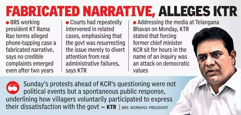 Hyderabad: The Special Investigation Team (SIT), during its interrogation of BRS president K Chandrasekhar Rao in the alleged phone-tapping case, sought to know from the former chief minister why illegal surveillance was mounted not only on then opposition leader A Revanth Reddy but also on KCR’s nephew and Siddipet MLA T Harish Rao between 2018 and 2019.While KCR reportedly denied any knowledge of the alleged illegal surveillance, investigators reportedly produced evidence to corroborate their claims. It is learnt that officials showed KCR documentary evidence gathered during the investigation, including phone numbers linked to key political leaders such as Revanth Reddy, Ponguleti Srinivasa Reddy, Eatala Rajender, and Harish Rao that were allegedly tapped by senior officials then working in the Special Intelligence Branch (SIB). Eatala’s phone was reportedly under surveillance when he was in the BRS and continued after he joined the BJP. Rejecting the claims of the investigators, KCR said that he was the one who led the fight for a separate state of Telangana, adding that he believed in value-based politics and never supported any illegal acts. “In case someone in the SIB committed any excesses without my knowledge, it is unfortunate,” the former chief minister reportedly told investigators in the course of the investigation. Investigators reportedly questioned KCR in detail about his role in giving an extension to T Prabhakar Rao as SIB chief, besides entrusting him the authority to tap phones. The investigators said that as per the Indian Telegraph Act, only a serving police officer at the rank of inspector general (IG) can be entrusted the authority to supervise phonetaps. “Prabhakar was ineligible to be entrusted this responsibility as he had already retired from service,” sources claimed.Earlier, during their interrogation of Siddipet MLA Harish Rao, investigators reportedly informed him that his own phone was under illegal surveillance during 2018-19. However, Harish Rao reportedly raised doubts over the credibility of the allegations made by the police officials.Meanwhile, the SIT is gearing up to file a supplementary chargesheet in the case based on the evidence gathered over the course of its investigation. It remains to be seen whether more names would be added as accused in the upcoming supplementary chargesheet.